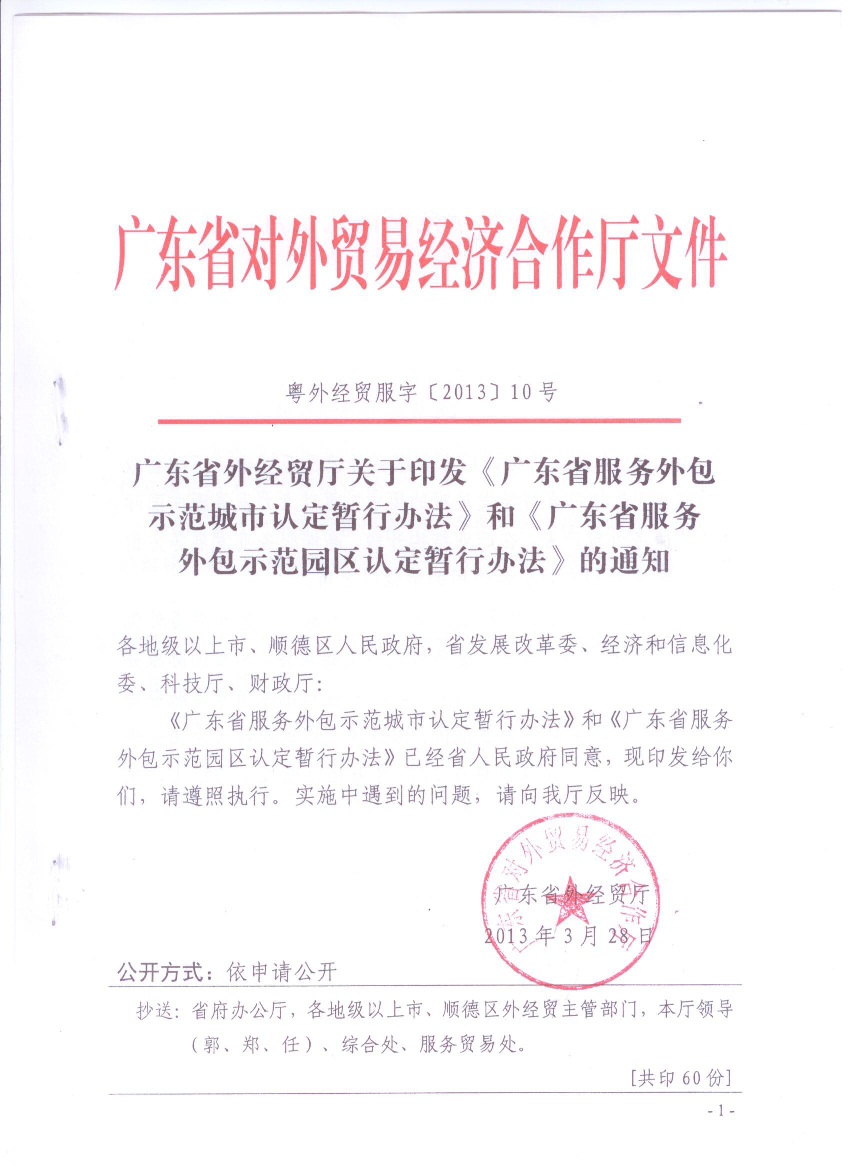 广东省外经贸厅关于印发《广东省服务外包示范城市认定暂行办法》和《广东省服务外包示范园区认定暂行办法》的通知