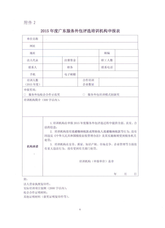2015年度广东服务外包评选培训机构申报表
