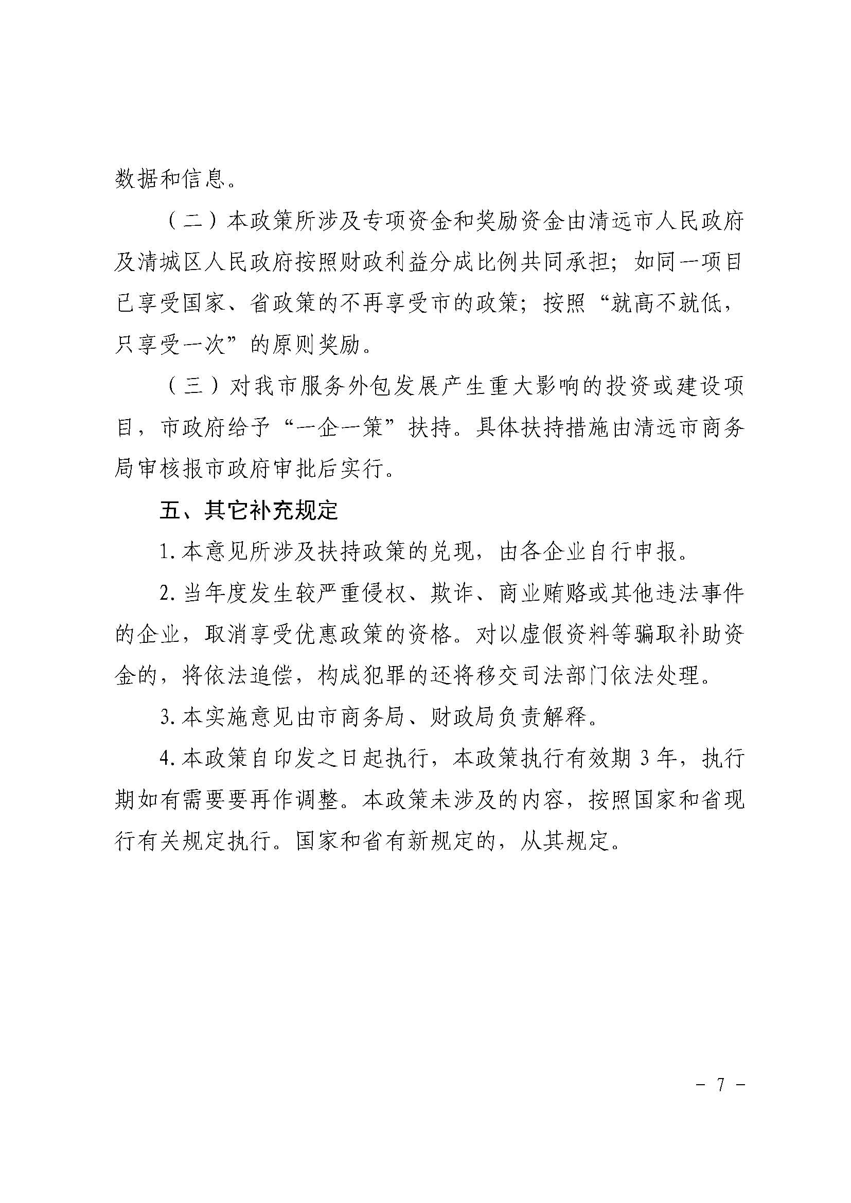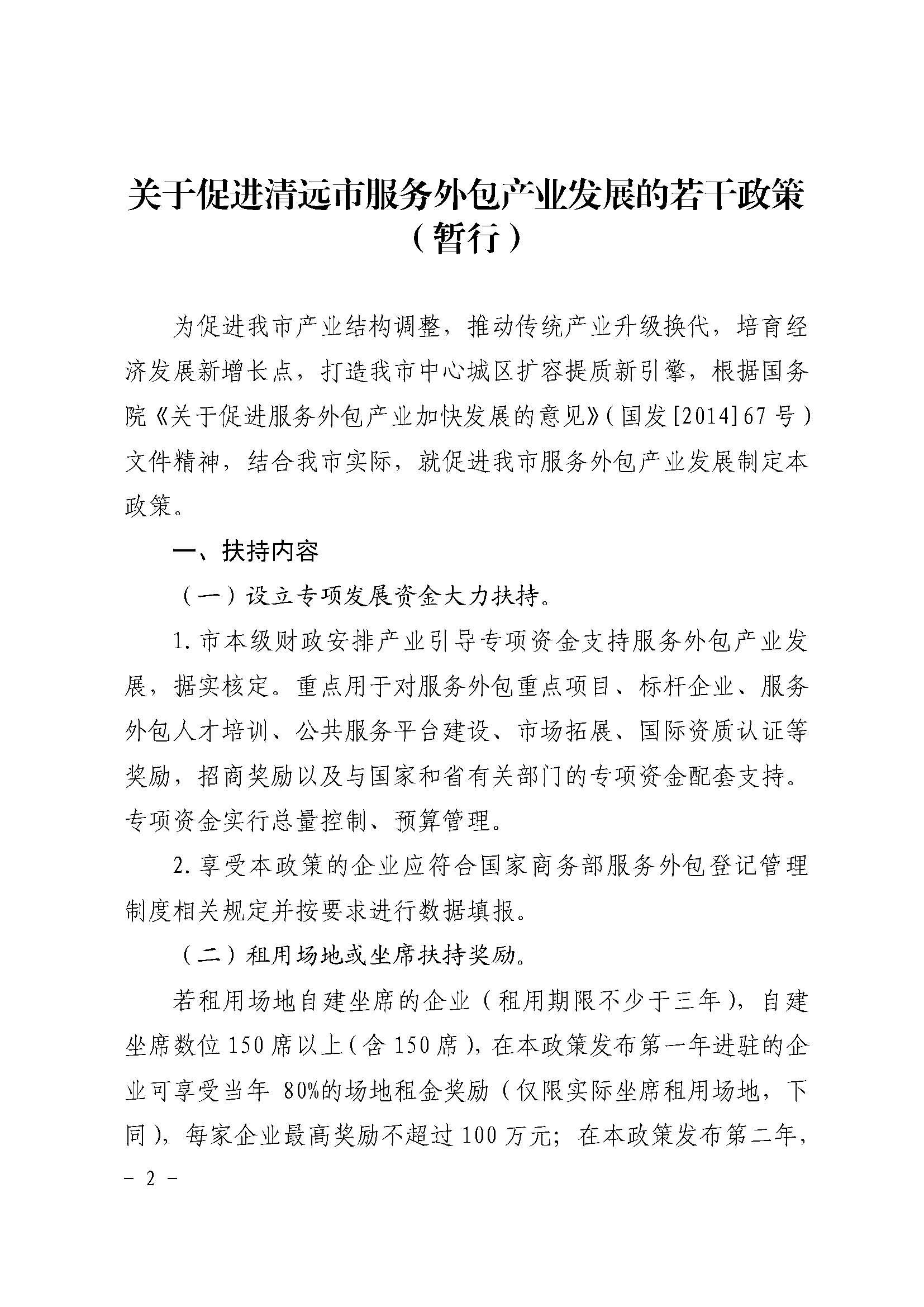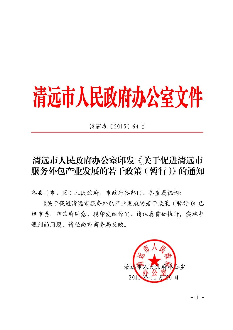 清远市人民政府办公室印发《关于促进清远市服务外包产业发展的若干政策(暂行)》的通知