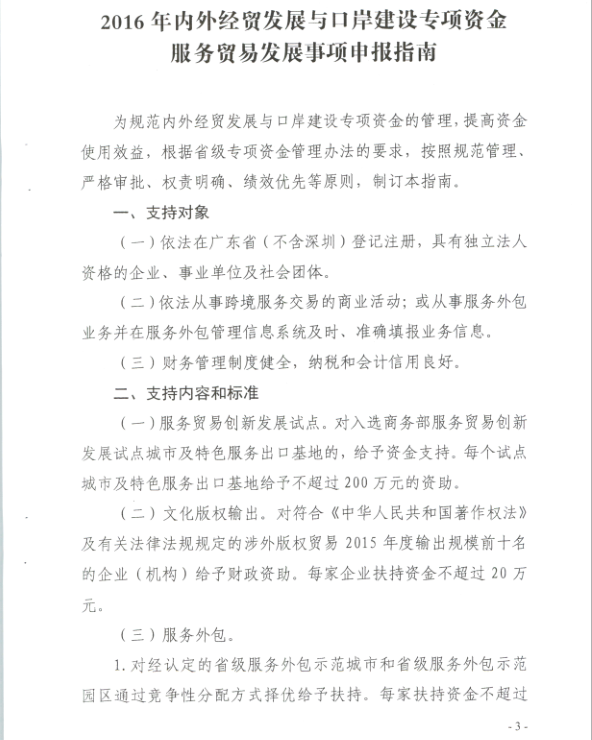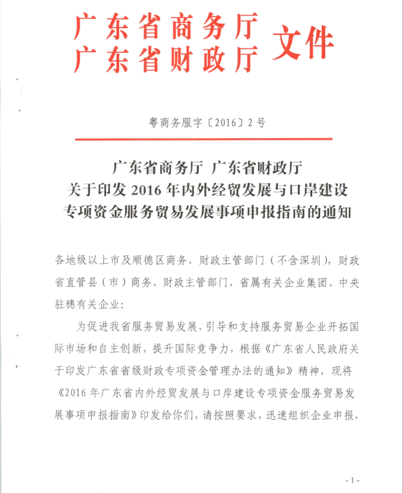 广东省商务厅 广东省财政厅关于印发2016年内外经贸发展与口岸建设专项资金服务贸易发展事项申报指南的通知