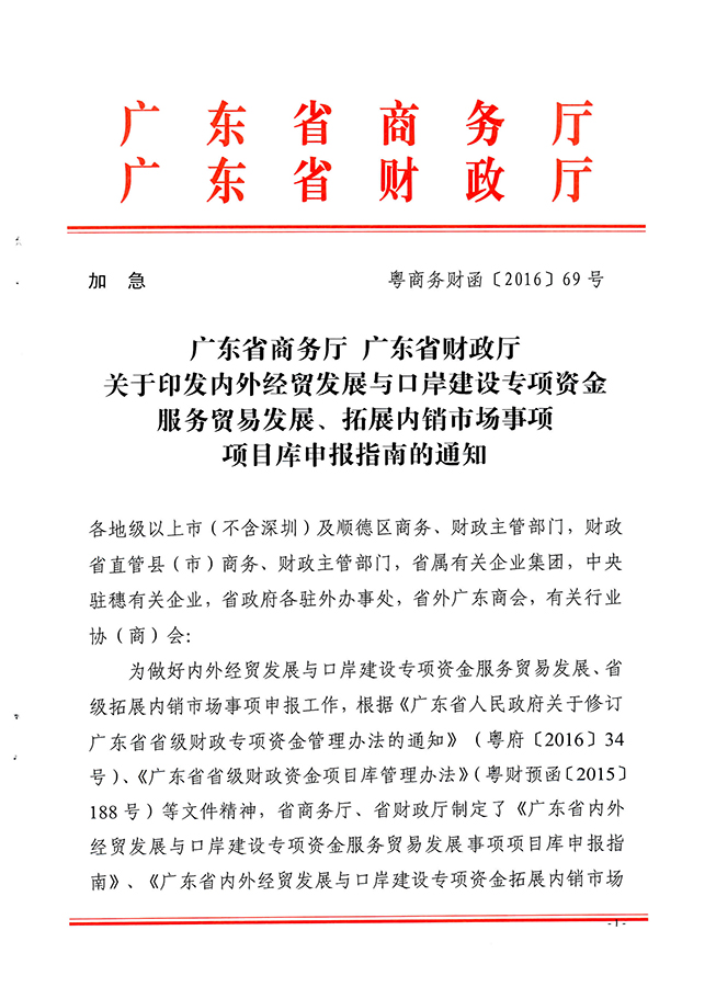 转发: 广东省内外经贸发展与口岸建设专项资金服务贸易发展、拓展内销市场事项项目库申报指南的通知