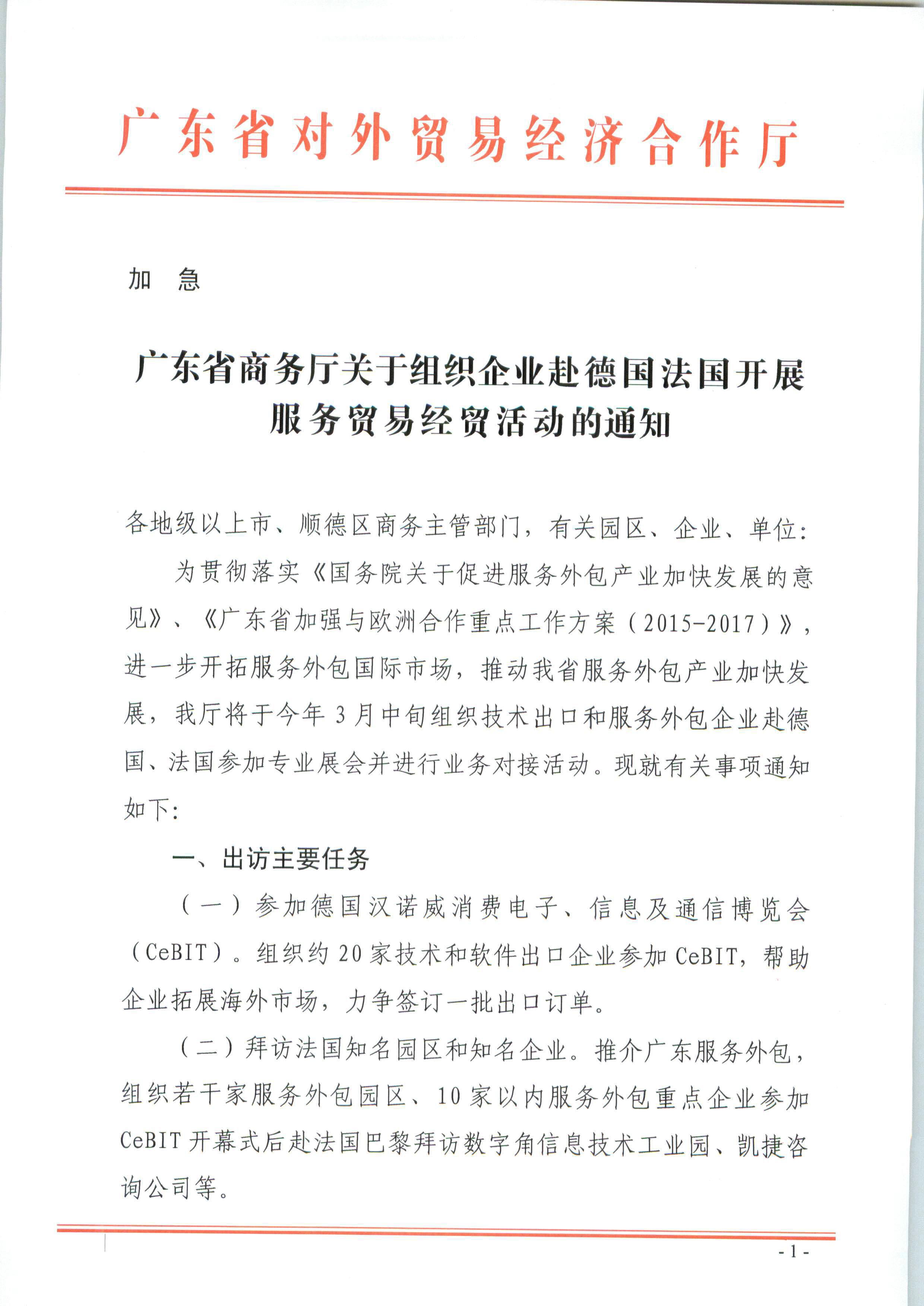 转发:广东省商务厅关于组织企业赴德国法国开展服务贸易经贸活动的通知