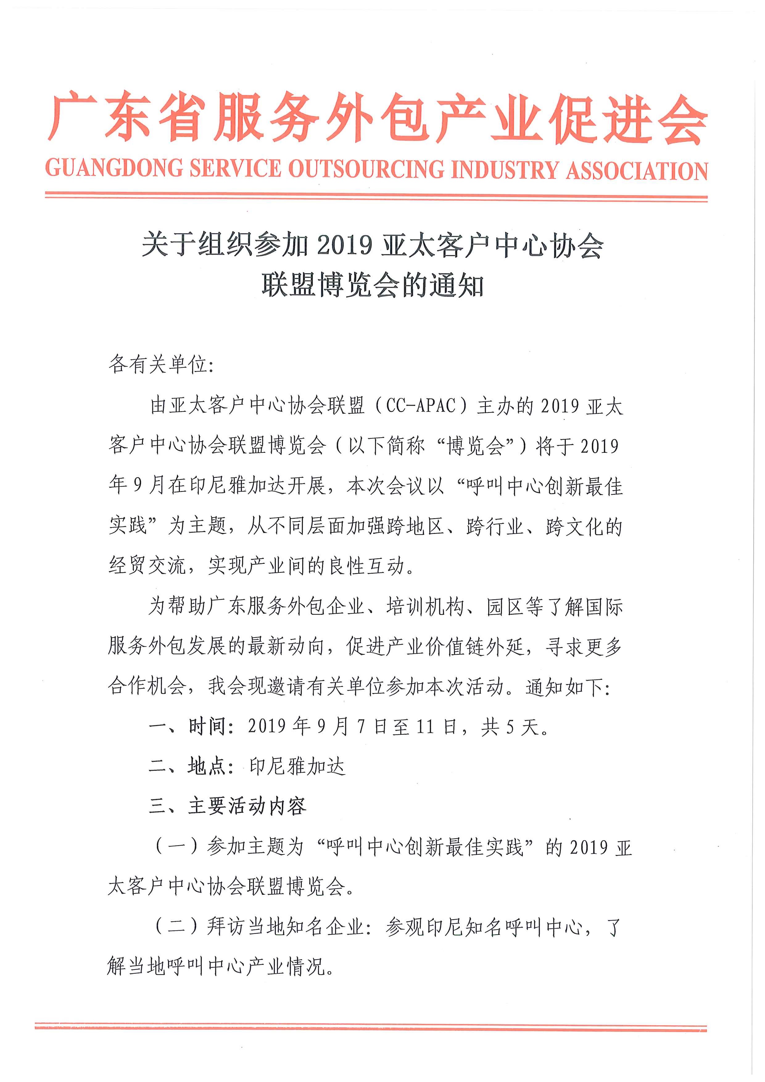 关于组织参加2019亚太客户中心协会联盟博览会的通知
