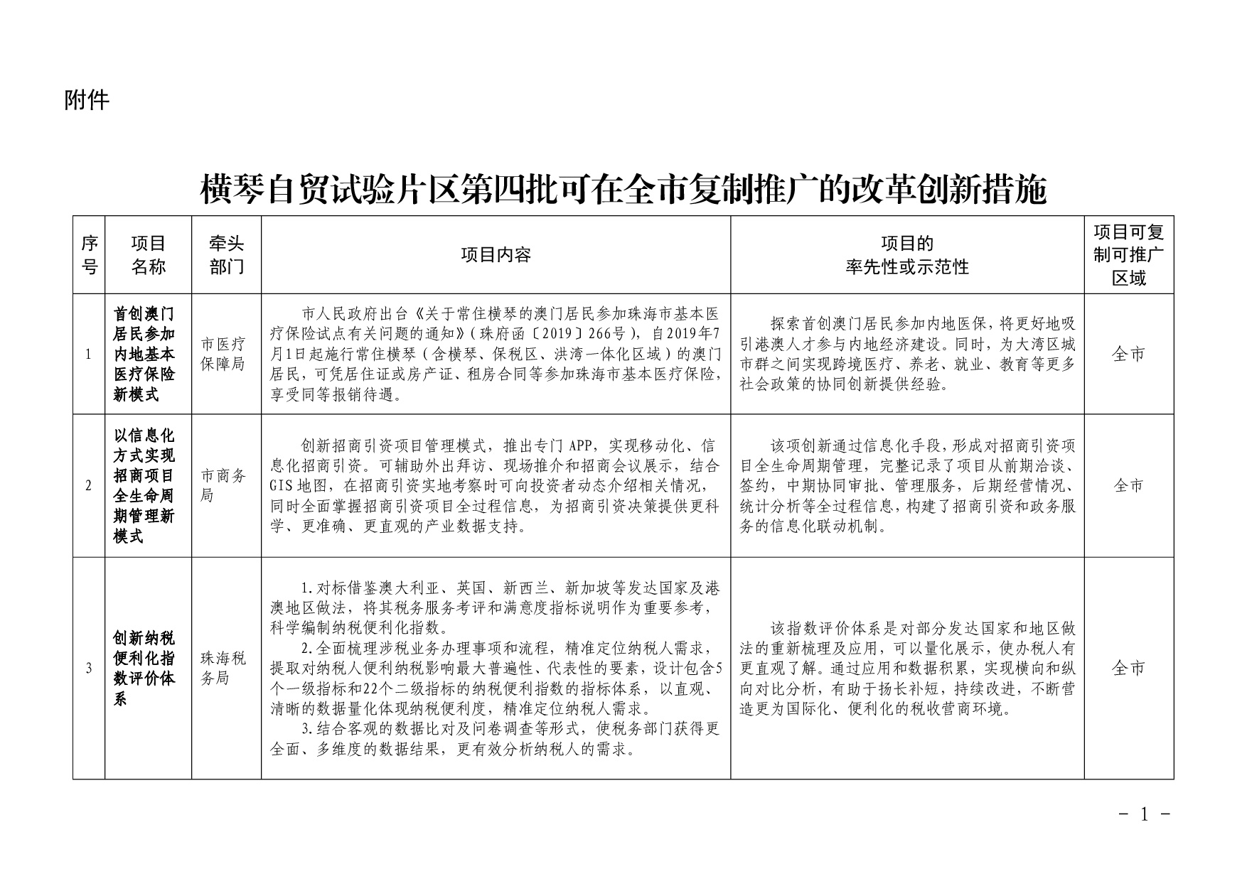附件:横琴自贸试验片区第四批可在全市复制推广的改革创新措施