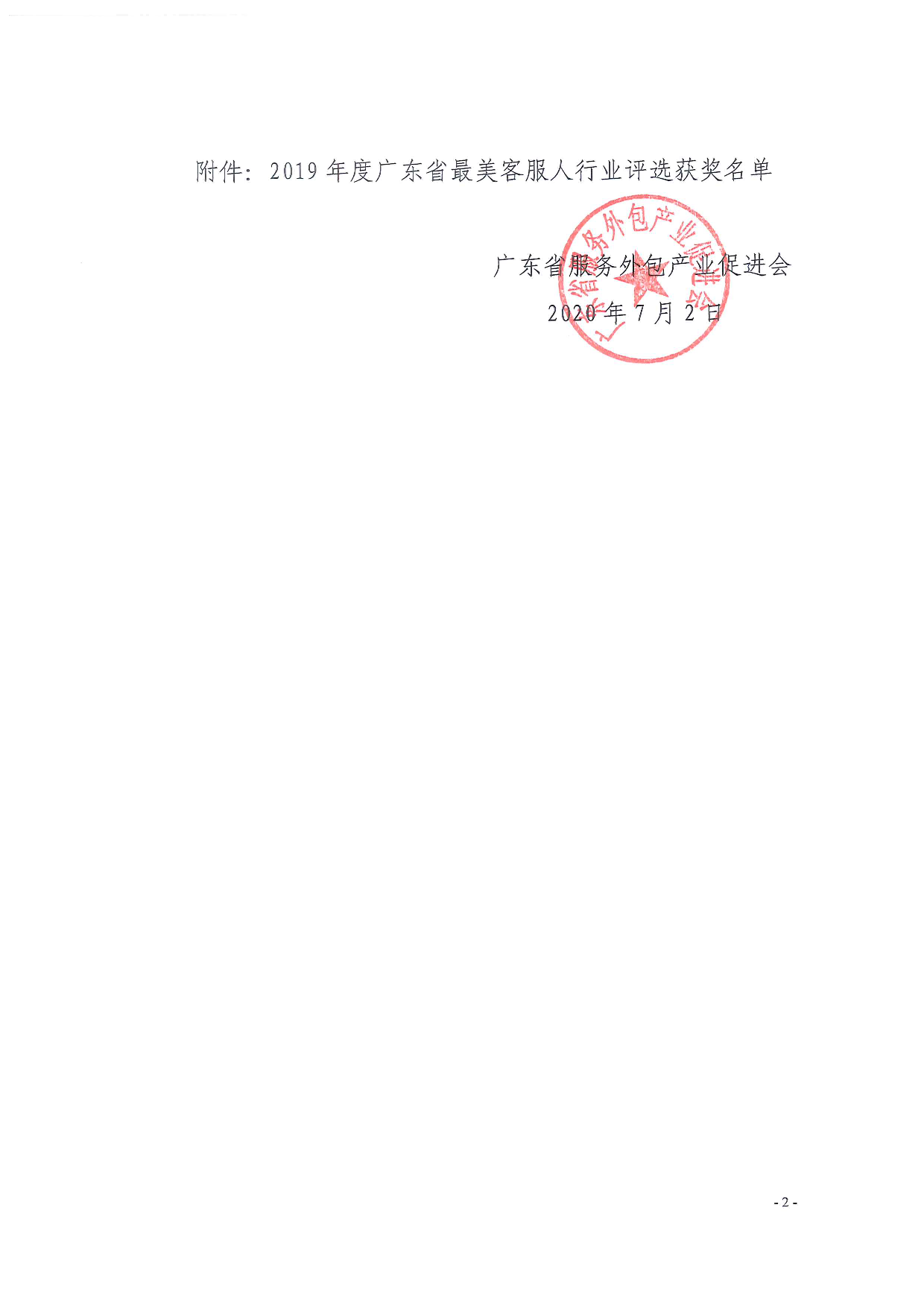 关于2019年度广东省最美客服人行业评选获奖名单的公示
